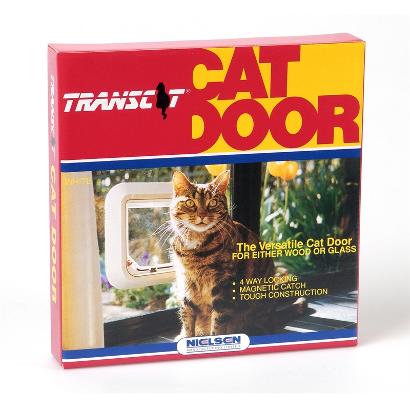This transparent cat door is designed for glass installations but can be used in some wood installations.